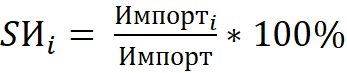 где: Sᵢ - доля i-го товара в общем объеме экспорта/импорта, %.