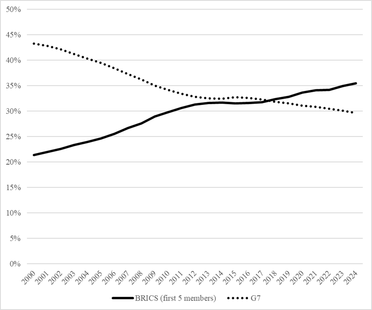 At the same time, although the combined real GDP of the BRICS countries exceeds that of the G7, in terms of GDP per capita, developing economies still lag significantly behind [3]. This may indicate a comparatively lower standard of living in the BRICS countries.