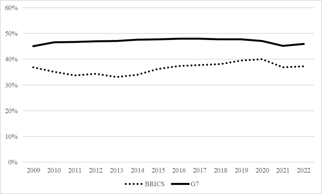 According to the World Bank, this indicator exceeded the share of G7 countries for several years now, as clearly shown in Figure 1.