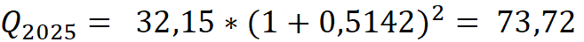 As a result, the volume of R&D expenditures of Russian organizations in 2025 can be predicted using the following formula: