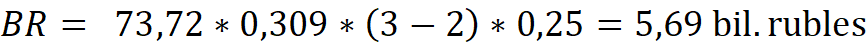 Q – the amount of R&D expenses for the corresponding year, billion rubles;