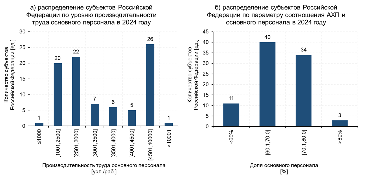 Высокий разброс значений производительности труда обусловлен двумя причинами: различными стандартами предоставления социальных услуг и неточностями учета сведений о количестве предоставленных социальных услуг.