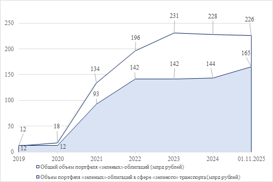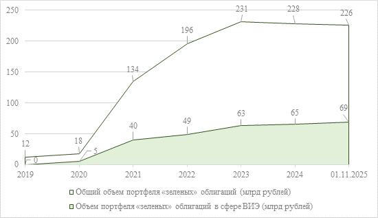 Как показывает актуальный на данный момент отчет Международной платформы устойчивого финансирования (IPSF), несмотря на общепринятый статус «зеленых» облигаций в качестве ключевого инструмента движения к «зеленой» экономике, «зеленое» кредитование (включая официально неверифицированные сделки) на данный момент является более распространенным и используется для привлечения больших объемов капитала [38]. В России также сохраняется мировая тенденция: объем портфеля ESG-кредитов, по консервативной оценке рейтингового агентства и ESG-верификатора «Эксперт РА», в 2024 году достиг 5,5 трлн рублей, в котором «зеленые» кредиты составили 41,5% - почти 2,3 трлн рублей [27]. Для сравнения, рынок российских «зеленых» облигаций на ноябрь 2025 года составил 226 млрд рублей [23]. При этом, нередко эмитентами выступают банковские организации, привлекающие средства в целях рефинансирования ранее выданных кредитов (например, бумаги ВЭБ.РФ серии ПБО-002Р-39).