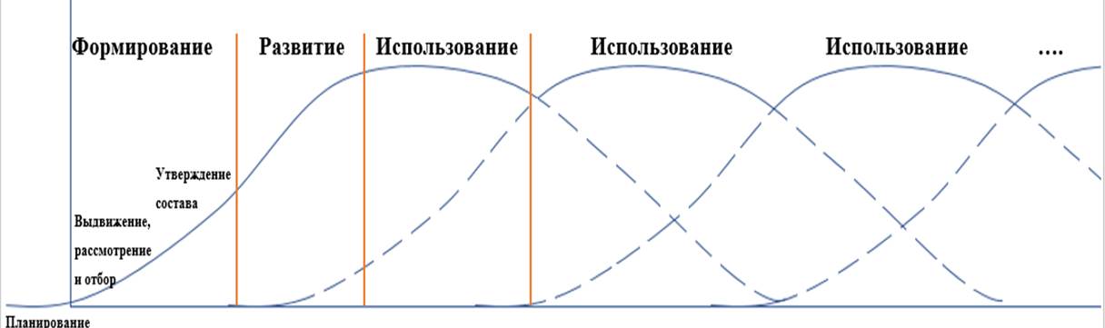 - теории управления талантами (Talent Management) - резерв рассматривается как ключевой элемент «пула талантов», требующий сегментации, развития, грамотного использования и удержания;