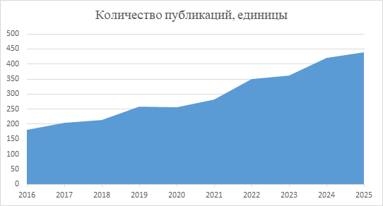 Рисунок 1. Динамика тематических публикаций в научной базе данных Google Scholar