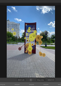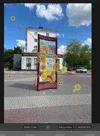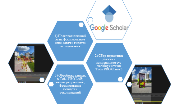 На втором этапе исследования был проведен нейромаркетинговый эксперимент с использованием eye-tracking системы Tobii PRO Glasses 3. В эксперименте приняли участие девять респондентов от 20 до 30 лет. Объектом исследования выступила рекламная конструкция ситилайт (рекламный световой короб, подсвеченный изнутри), состоящий из трёх лайтбоксов, со следующей информацией: