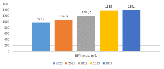 Рисунок 1 - Валовой региональный продукт Волгоградской области (данные по годам приведены в текущих ценах), млрд рублей [15]
