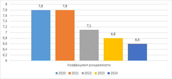 Рисунок 6 - Коэффициент рождаемости в Волгоградской области, человек на 1 тыс. человек населения [15]
