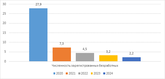 Рисунок 12 - Численность зарегистрированных безработных в Волгоградской области (на конец года), тыс. человек [16]