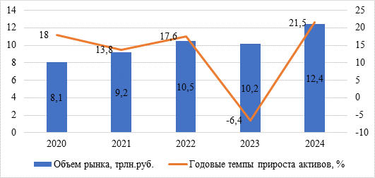 Рисунок 1 – Объемы рынка коллективных инвестиций РФ за 2020-2024 гг.