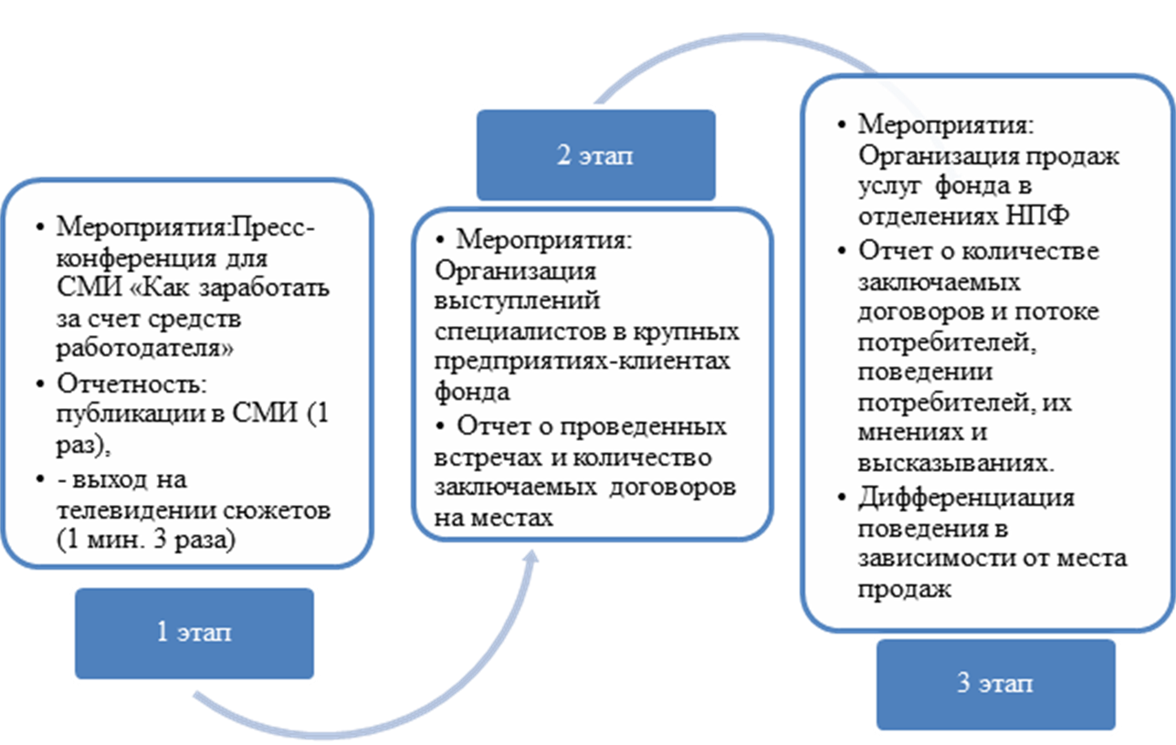 Следовательно, чтобы создать благоприятное восприятие некоммерческой организации, необходимо применять маркетинговые стратегии, в том числе и разработку стратегии PR-кампании. Важно ориентироваться на несколько слоев населения, что требует разработки уникального плана для каждой из них. Основная цель PR-продвижения – это широкое распространение свежих данных о новинках компании, к примеру, о начале реализации системы обязательного пенсионного страхования (рисунок 5).