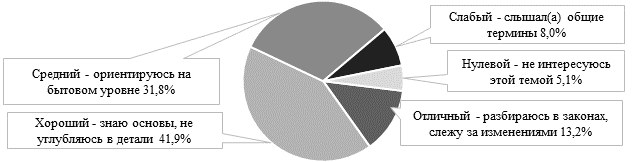 Рисунок 6. Уровень знаний законодательства в области финансов у молодежи