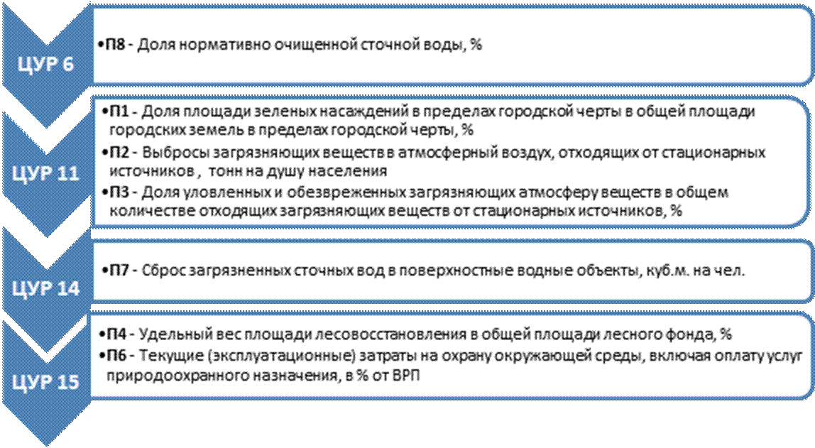 В итоговую систему индикаторов вошли восемь экологических показателей, характеризующих четыре цели устойчивого развития (Рисунок 1).