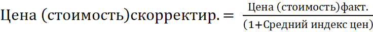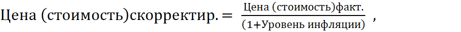 – очистить массив данных стоимостных показателей от влияния инфляции. Чаще всего используются три метода преобразования данных: по уровню инфляции, по среднему индексу цен на потребляемые ресурсы или производимую продукцию, по кросс-курсам валют. Мы предлагаем использовать первый (1) или второй (2) способы: