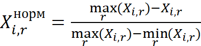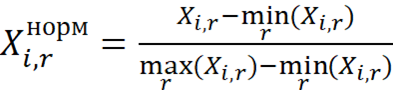 Приведение показателей к единой шкале от 0 до 1 позволит корректно агрегировать их в интегральный индекс, целесообразно применить широко используемый в практике метод минимаксной нормализации показателей по следующей формуле: