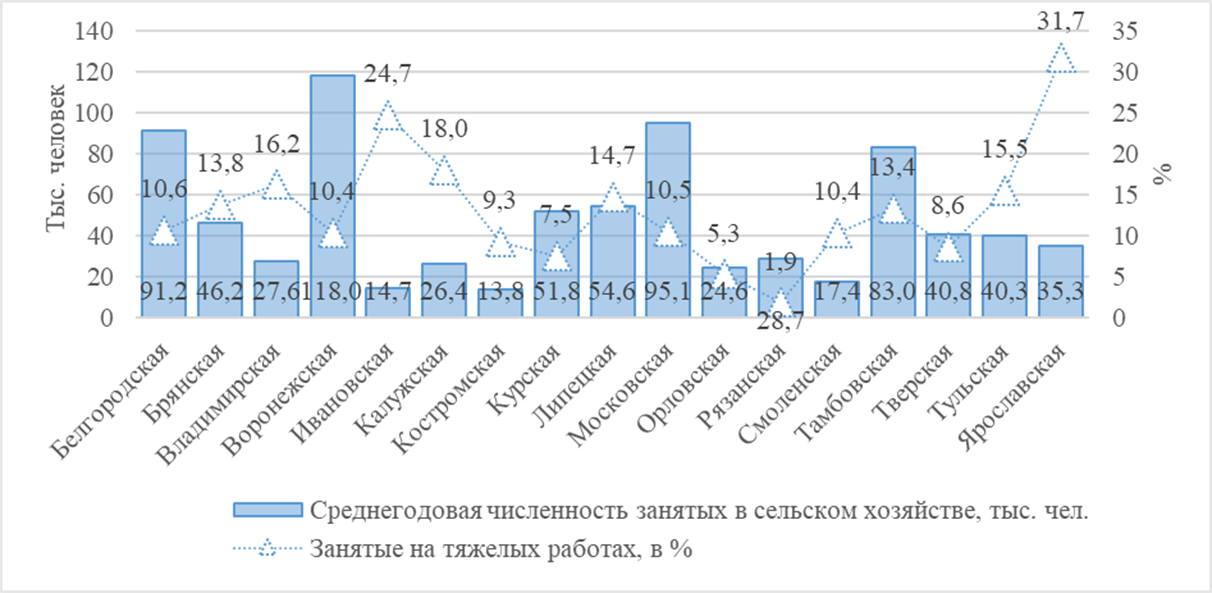 численности работников сельского хозяйства, занятых на тяжелых работах, %.