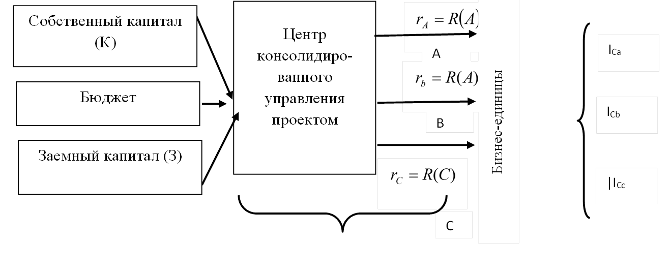 2) сформированный на базе матричного метода механизм управления финансовым обеспечением международного инвестиционного проекта можно рассматривать как интегрированную систему, включающую в себя субъектов инвестирования с соответствующими источниками капитала. Источники финансовых ресурсов, в свою очередь, представлены бюджетными средствами, собственным и заемным капиталом.