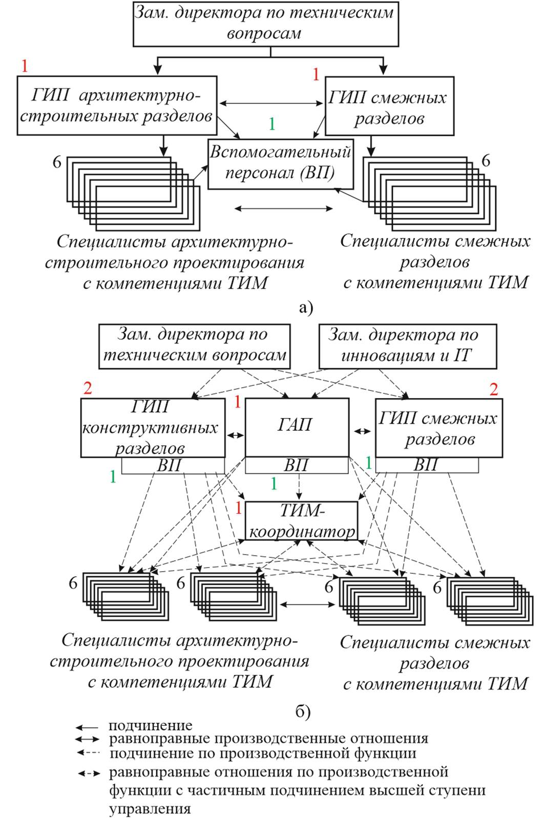 ТИМ-менеджеры и координаторы занимают особое место в структуре управления проектной организацией, поскольку выполняют управленческие функции, не совпадающие полностью с традиционными линейными ролями руководителей подразделений. Их деятельность направлена на формирование требований к моделированию, стандартизацию информационных процессов, обеспечение согласованности дисциплин и управление изменениями в информационной модели [5,9]. Это оказывает двойственное влияние на управляемость.