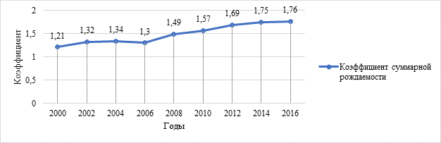 Рисунок 5. График изменения коэффициента суммарной рождаемости в России за 2000–2016 гг.