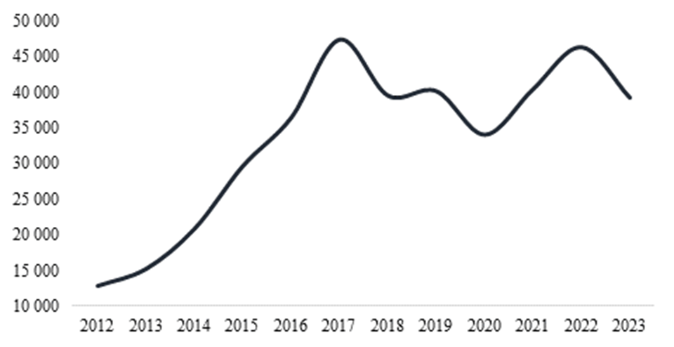 Figure 4. Number of emigrants from Croatia, 2012–2023, ppl.