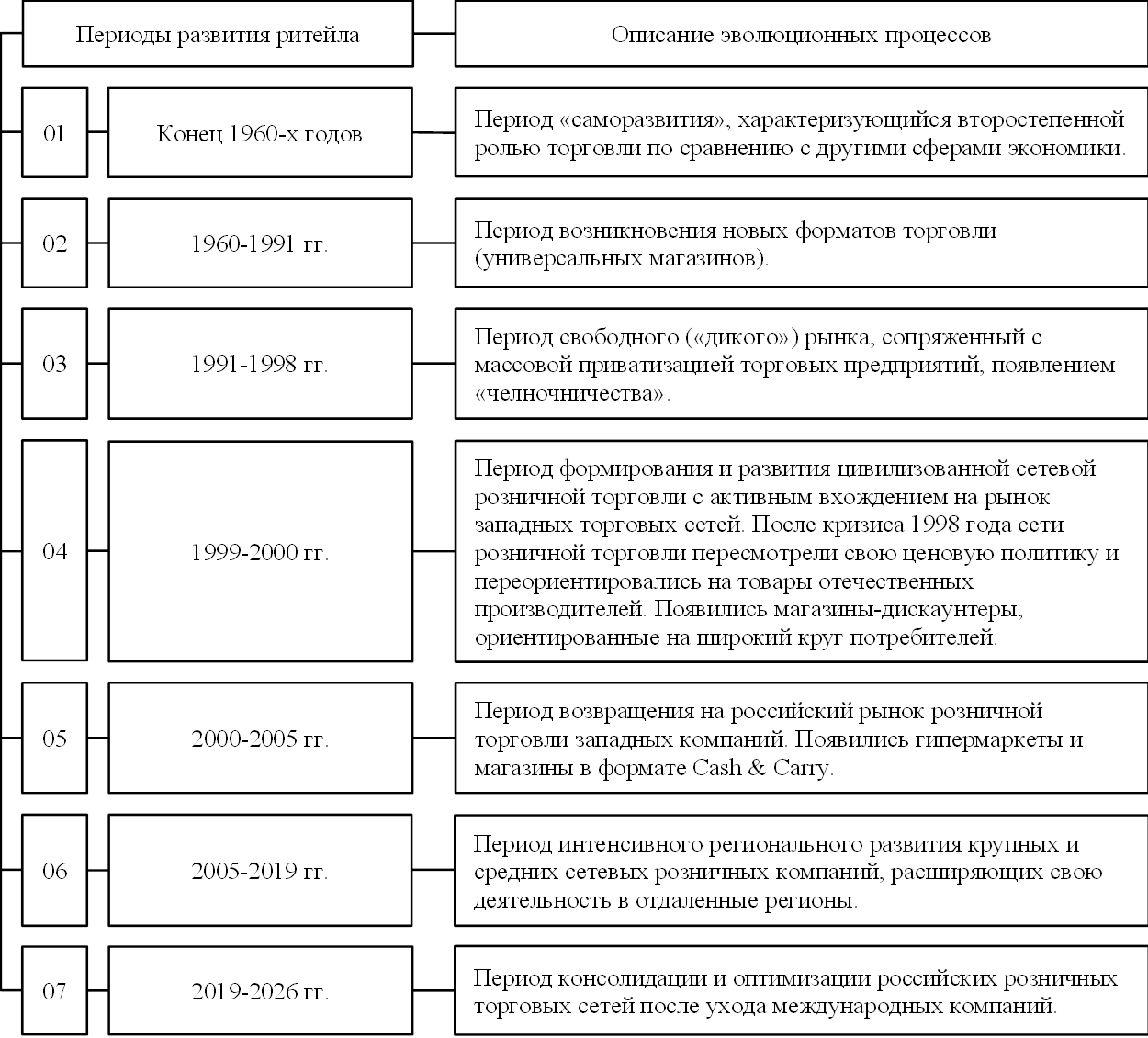 Рисунок 1. Периодизация эволюции розничной торговли в России