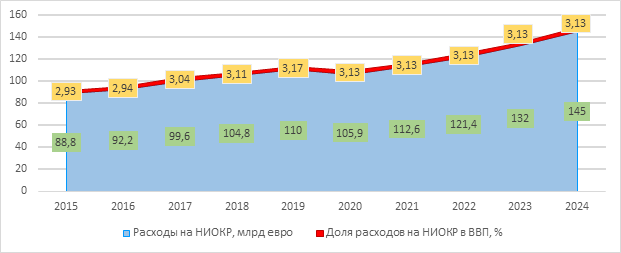 Рисунок 1. Динамика расходов на НИОКР в Германии в 2015-2024 гг.