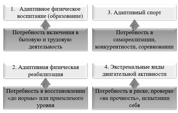 То же относится и к потребностям, реализуемым в спортивной активности. При этом психофизиологические характеристики: эмоциональное напряжение, интеллект, воля, двигательная активность могут определять успешность на всех этапах спортивной жизни паралимпийца [36]. Грамотно выстроенная архитектоника мотивации в адаптивном спорте способствует решению многих проблем, в том числе полноценной интеграции индивидов с ОВЗ в социальную жизнь.