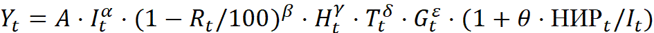 В модель вводится нормированный индекс НИР-эффекта: