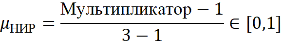 мультипликатор НИР (например, 2,3 → нормируется как 0,77);