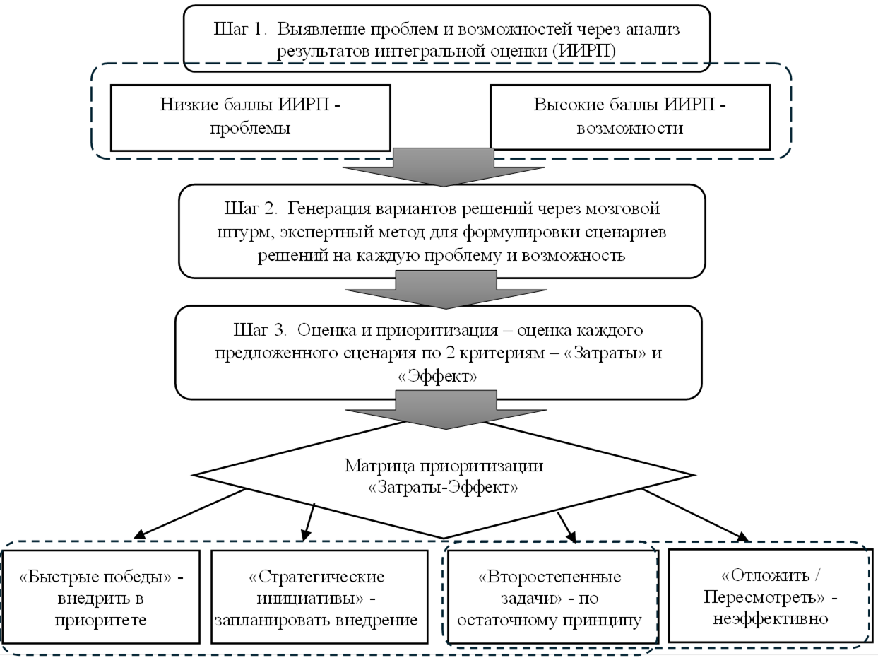 а) приоритизации проблем и возможностей на основе матрицы «затраты-эффект»;