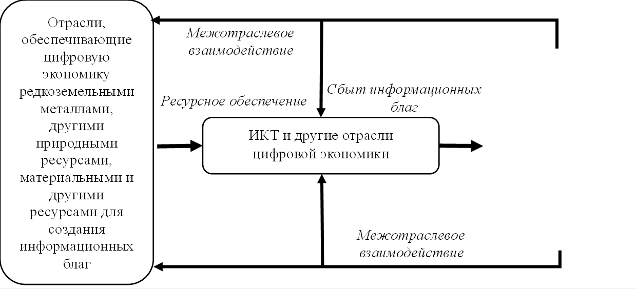 Другие отрасли потребляют данные информационные блага для своего экономического роста и развития, при этом обеспечивая цифровую экономику необходимыми природными и другими ресурсами для производства новых цифровых технологий (рис.2).