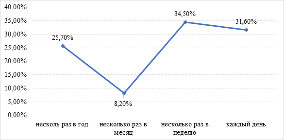 Рисунок 6 – Ответ обучающимися на вопрос «Как часто Вы играли в соревновательные онлайн-играх за последний год?»
