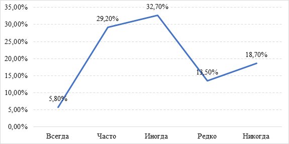 Другим фактором, повышающем интерес молодежи к киберспорту является его зрелищность. Во время просмотра турниров 5,8% опрошенных «всегда» смотрят стримы, 29,2% опрошенных «часто», и 32,5% опрошенных «иногда» смотрят стримы, что можно использовать в воспитательных и образовательных целях, в процессе социализации.