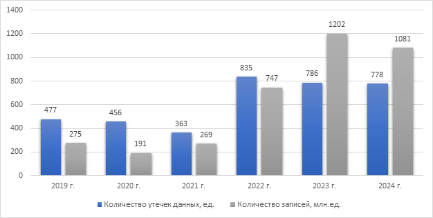 году случаев утечки данных зафиксировано 786, а в 2024 году – 778 единиц, что