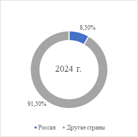 Рисунок 2 – Доля утечек информации в России от общего количества в мире за 2023-2024 гг. (составлено автором по [20])