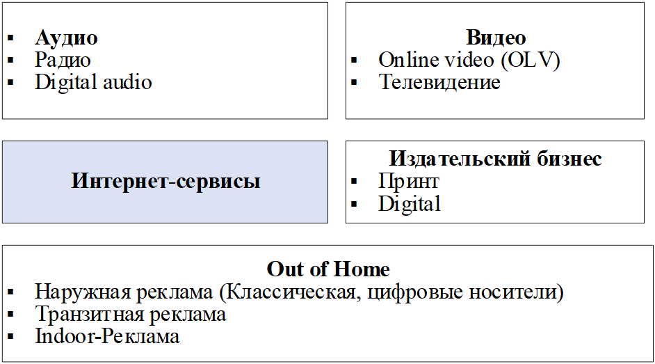 Рисунок 1. Основные сегменты рекламного рынка после 2023