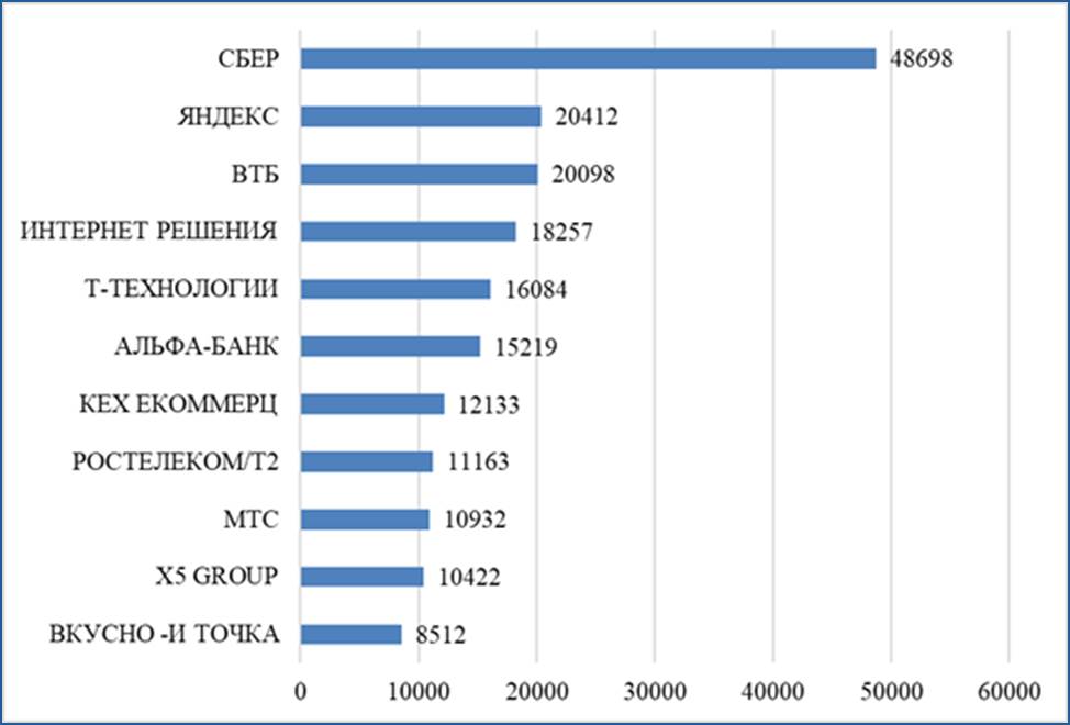 Рисунок 4. Крупнейшие рекламодатели в России в 2024 году (млн руб. без НДС)