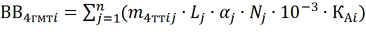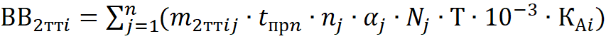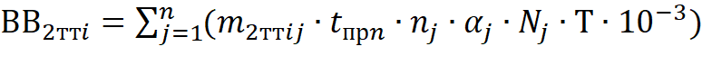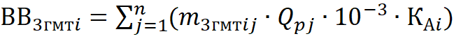 где ВВi – валовый выброс загрязняющих веществ в атмосферный воздух i-го загрязняющего вещества или группы веществ с одинаковым коэффициентом относительной эколого-экономической опасности (агрессивности), т/год;