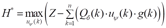 который представляет собой вектор оптимальных параметров Qф*(k) и u*(k), при которых затраты достигают минимального значения и, как следствие, максимальной операционной прибыли: