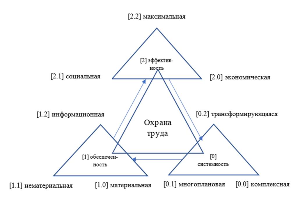 Аппарат категориально-системной методологии и методы интеллектуальной схемотехники предоставляют возможность сформировать комплекс моделей, обеспечивающих продуктивность и результативность исследовательского процесса и позволяющих выявить сущность, содержание, принципы охраны труда как социально-экономической системы для дальнейшего использования выявленных аспектов при формировании концепции совершенствования и развития системы охраны труда в условиях цифровой трансформации экономики [9,10].