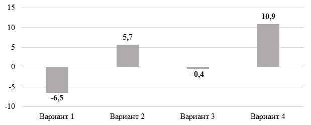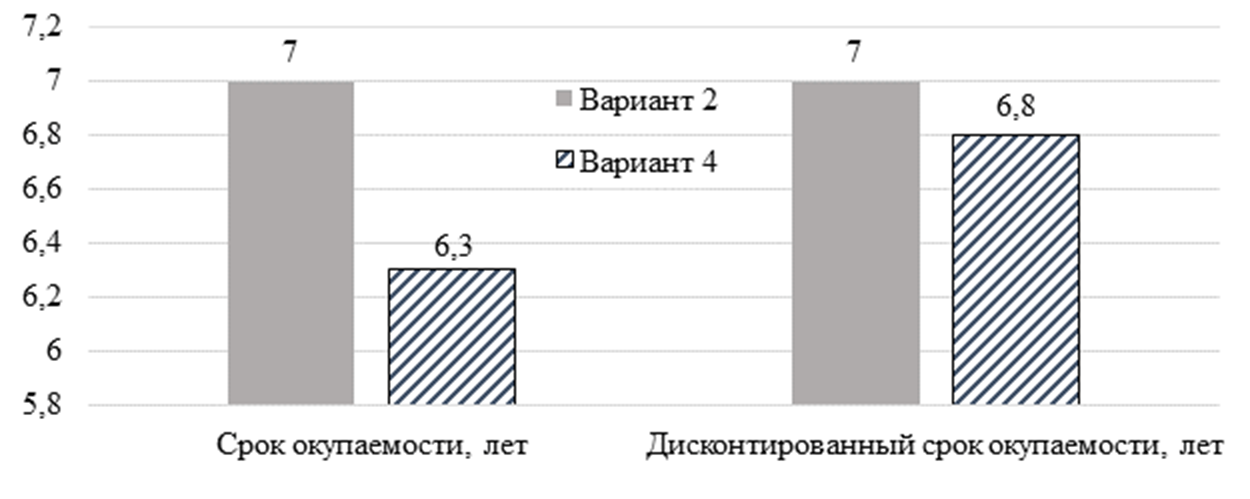 Положительный накопленный денежный поток в пределах расчетного периода был сформирован только по второму (11,4 млн рублей) и четвертому (22,4 млн рублей) вариантам.