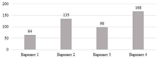 Критериальным значением для показателя дохода на инвестиции (ROI), отражающего уровень прибыли от реализации проекта, полученной на вложенные инвестиции, является 100% и выше. В данном случае соответствуют критерию также второй и четвертый варианты (рисунок 6):
