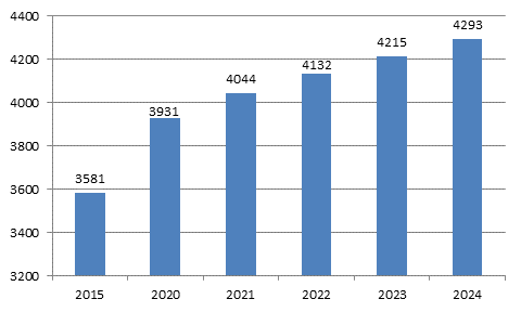 Общая площадь жилых помещений по состоянию на конец 2024 года в России составил 4293 млн. кв. м., в среднем на одного жителя нашей страны приходится 29,4 м2.