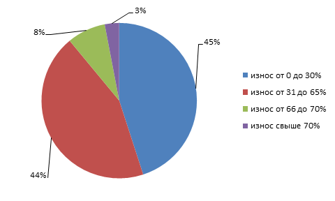 На сегодняшний день 45% жилищного фонда в России, представленного многоквартирными домами, имеет износ от 0 % до 30 %. Необходимо указать, также, что 44% жилых домов 31 % до 65 %. т.е. нуждается в капитальном ремонте и срочной модернизации.