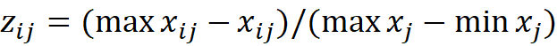 Для приведения разнородных показателей к сопоставимой шкале применяется min-max нормирование по диапазону [0; 1]. Для показателей стимулирующего типа (рост значения = улучшение) используется формула 3: