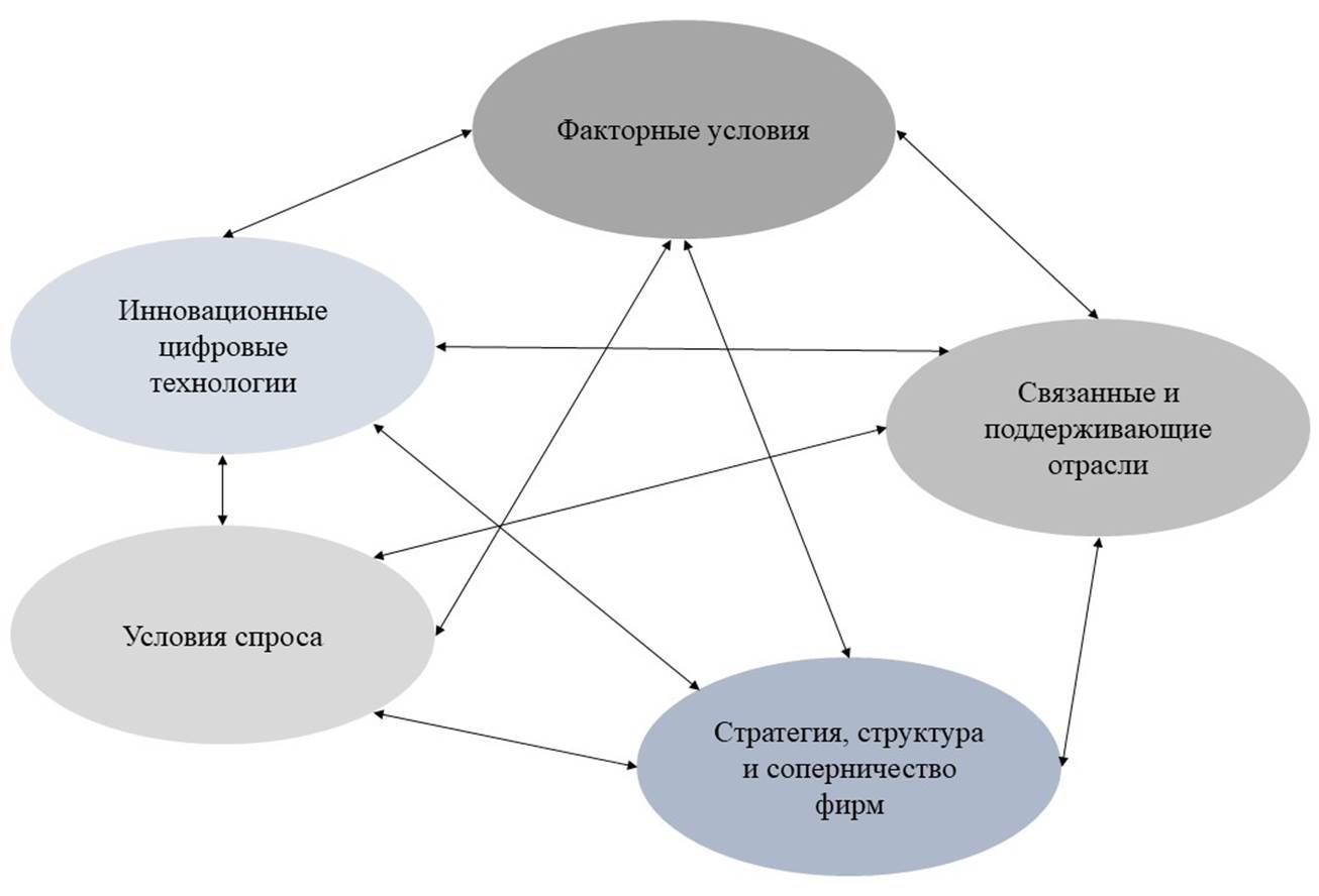 Рисунок 1. Модель «Алмаз Портера» с учетом новой грани «инновационные цифровые технологии».