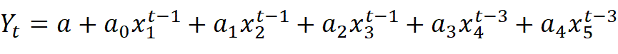 Проверка стационарности временных рядов исследуемых индикаторов в целях нивелирования ошибочной корреляционной зависимости показателей обусловила удаление тренда путем вычисления темпов роста эндогенной и экзогенных переменных с дальнейшим формированием модифицированных временных рядов, определяющих построение общего вида регрессионной региональной модели объема импорта Республики Татарстан (Yt):