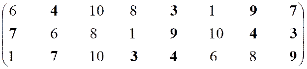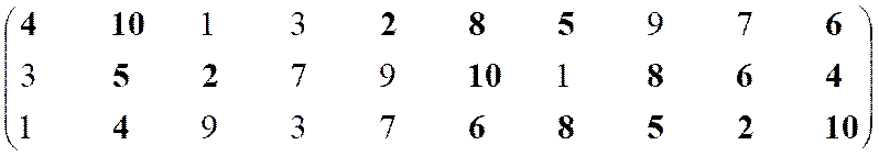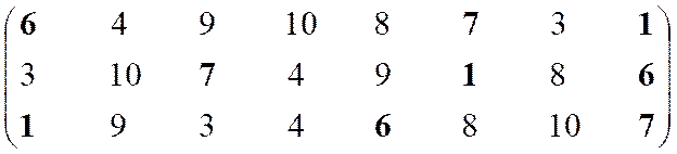 Он получен посредством построчного покритериального упорядочения номеров экономических систем 1–10 слева направо от худших к лучшим по первым трем показателям. Здесь и далее в массивах эффективные варианты выделены жирным шрифтом.
