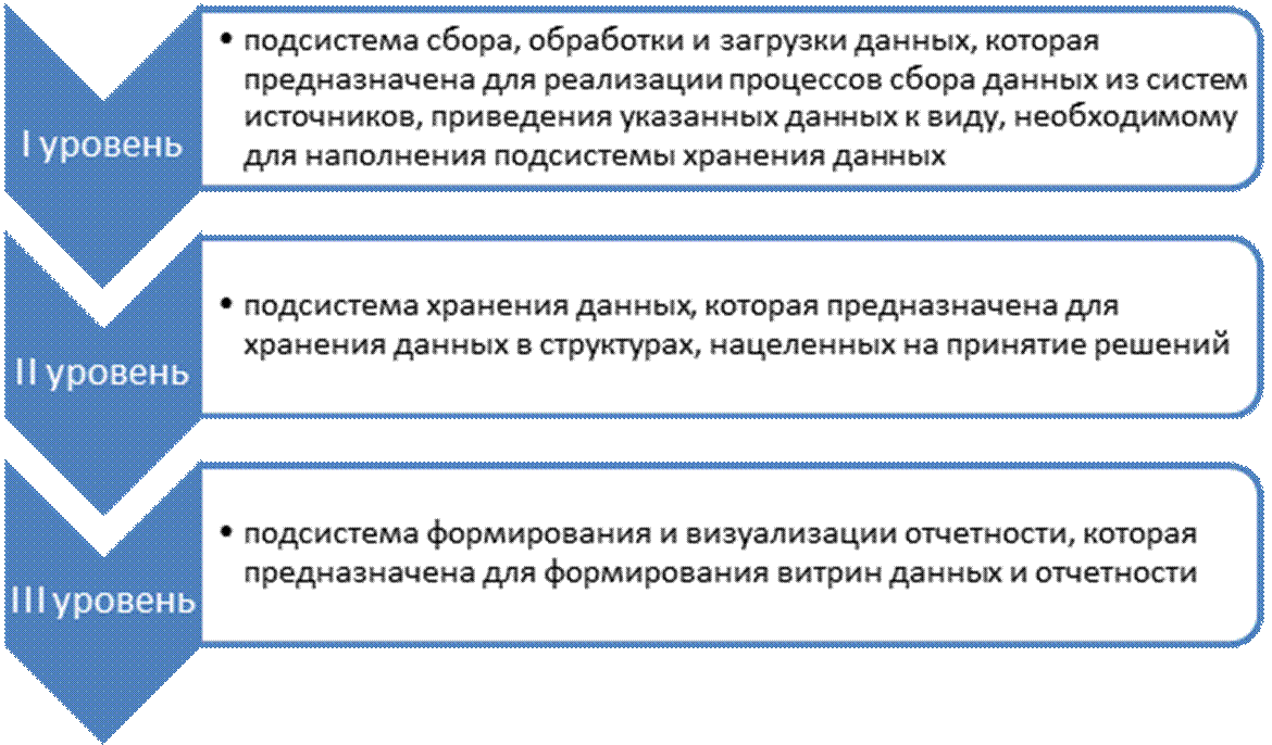 Представление данных в ИАС осуществляется представителями региональных министерств и ведомств России в сфере физкультуры и спорта, которая должна быть централизованной, т.е. все данные должны располагаться в центральном хранилище [5]. Система должна иметь трехуровневую архитектуру (первый уровень - источник, второй - хранилище, третий - отчетность) в соответствии с Рис- 2.
