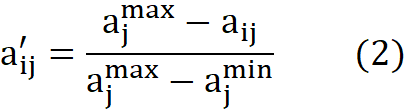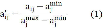 a'ᵢⱼ — нормированное значение; aⱼᵐⁱⁿ, aⱼᵐᵃˣ — минимальное и максимальное